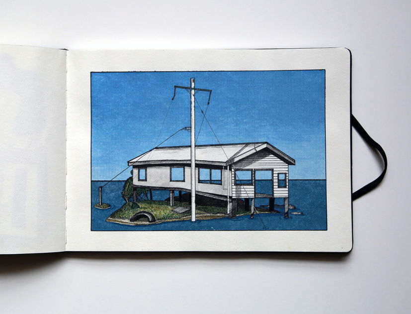 Au cours de ce séjour, j’ai réalisé une série de dessins dans différents carnets de voyage. Ces dessins résultent soit de l’observation directe de mon environnement, ou encore de leur interprétation, en écho aux perceptions subjectives des lieux que j’ai habités.